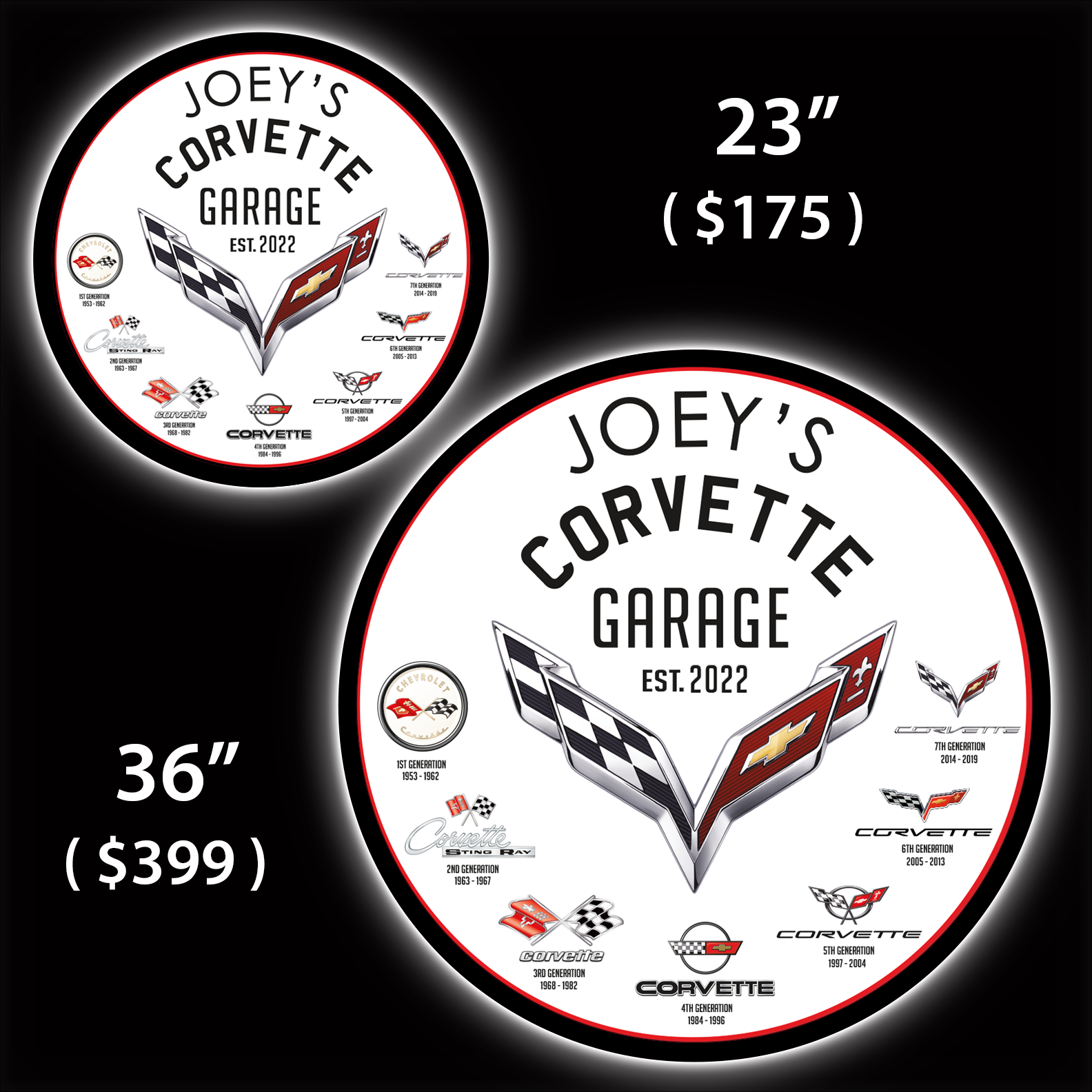 Corvette Garage Custom LED Sign (23" / 36") – Lighted Wall Art