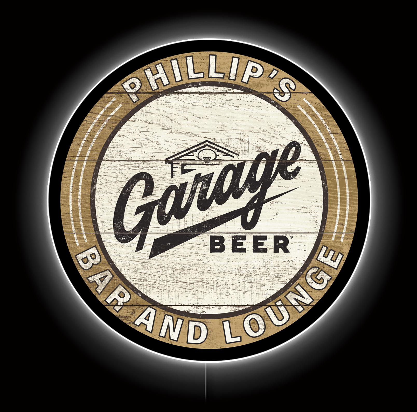 Transform your garage, man cave, or home bar into the ultimate hangout spot with this customizable LED sign. Featuring a rustic, wood-grain design, the sign has the bold text "Garage Bar and Lounge" at its center. This piece is made even more special with a dedicated space at the top to display "Your Name", allowing you to personalize the sign and make it truly your own.