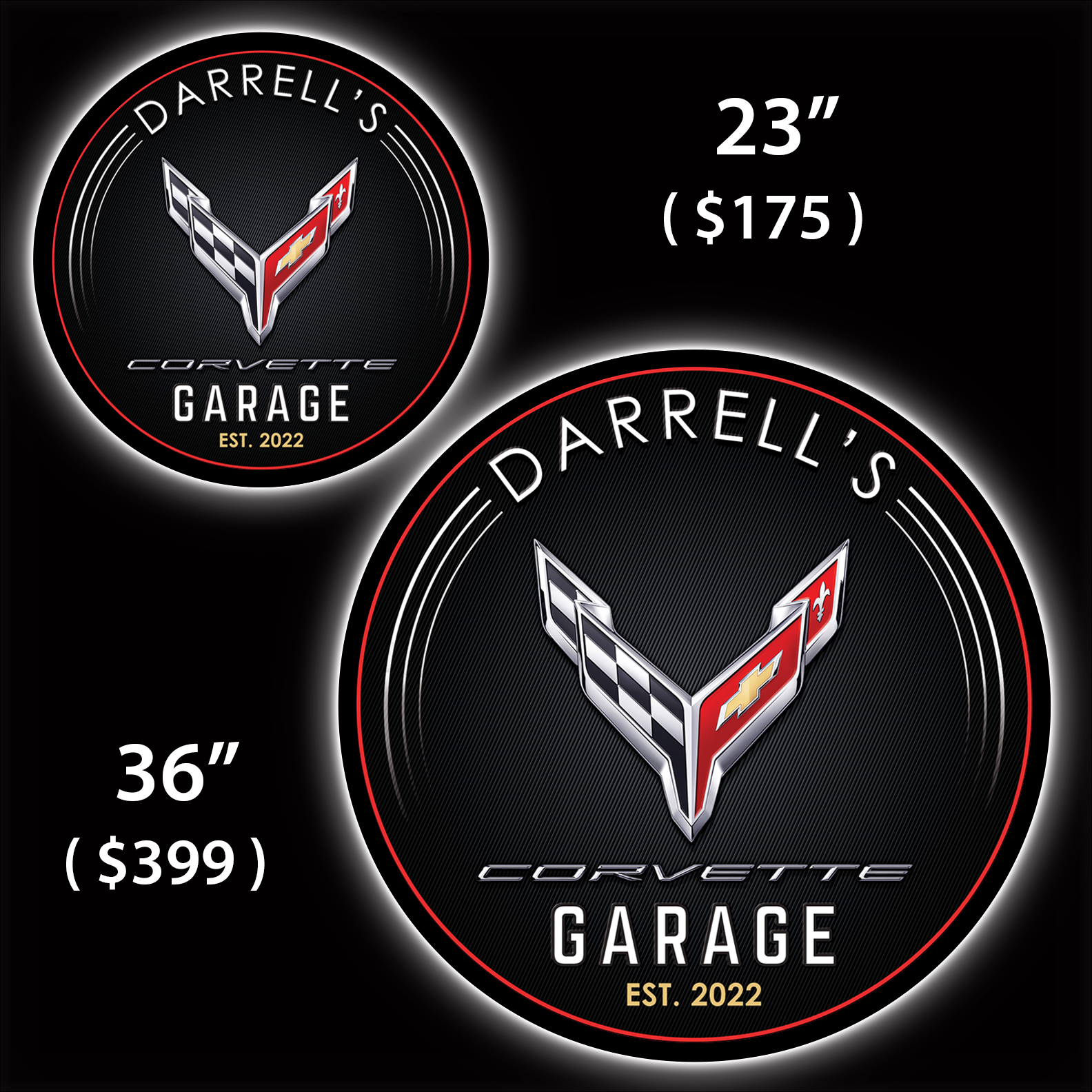 Modern Corvette Garage C8 Custom LED Sign (23" / 36") – Lighted Wall Art