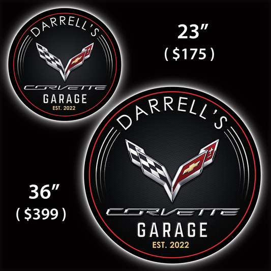 Corvette Garage Custom LED Sign (23" / 36") – Lighted Wall Art